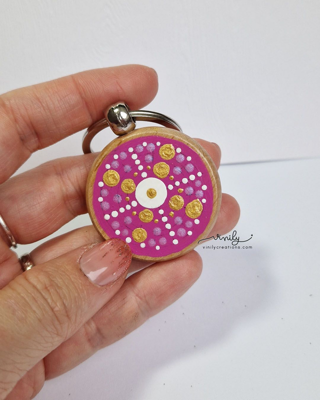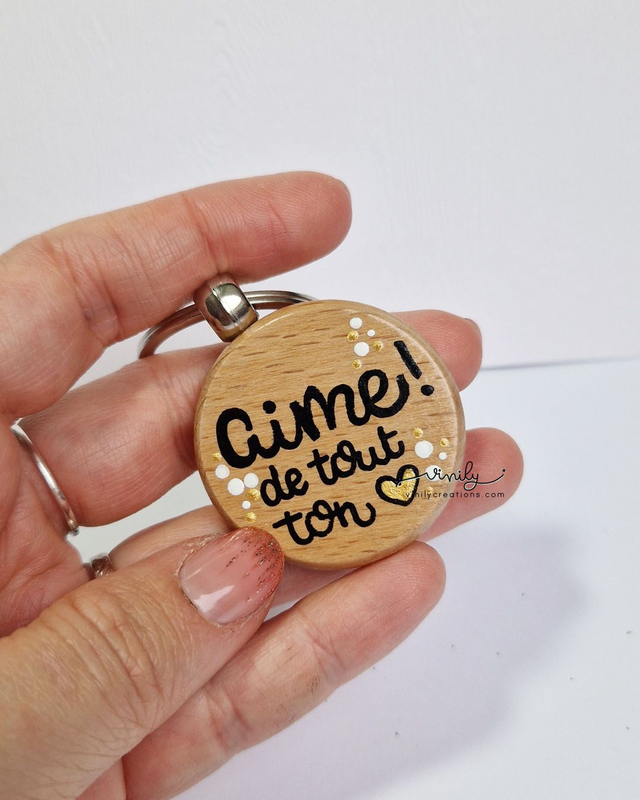 Porte-clé en bois décoré à la main et verni