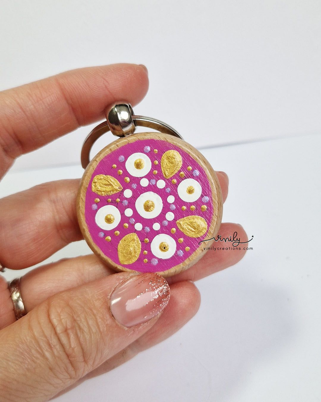 Porte-clé en bois décoré à la main et verni